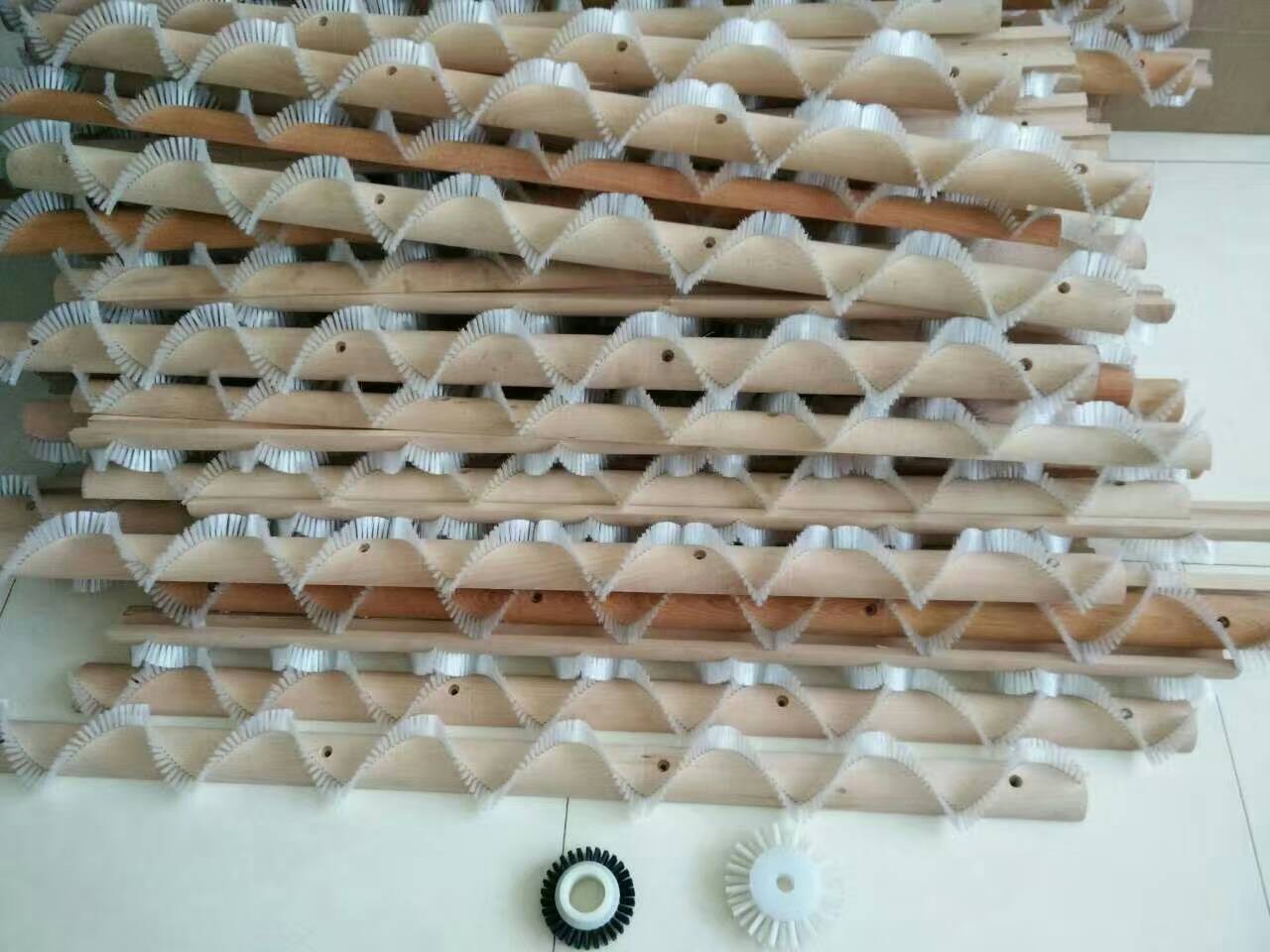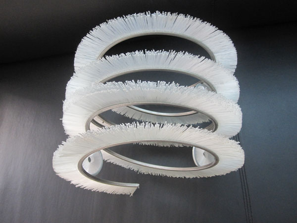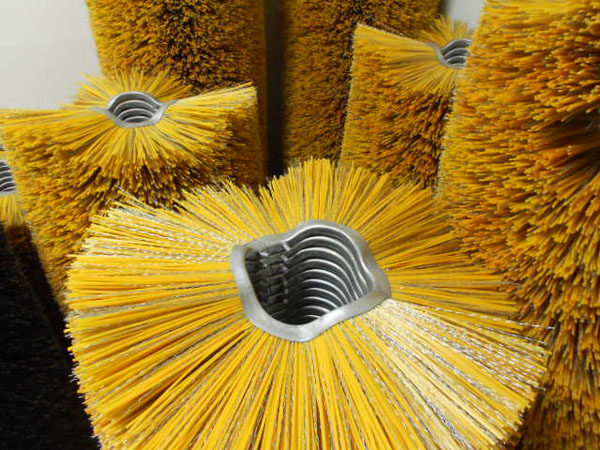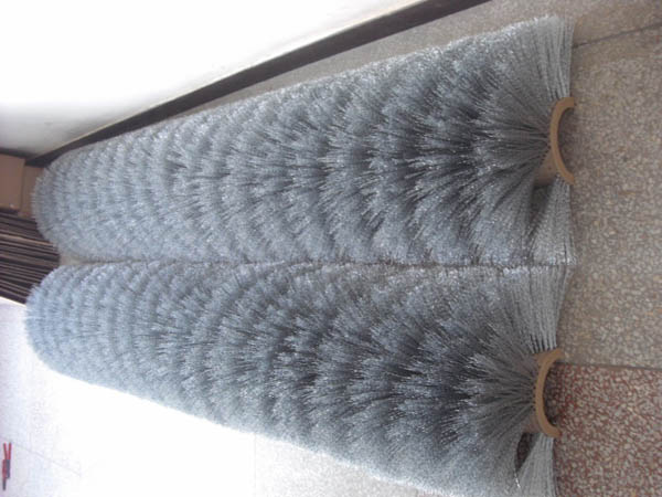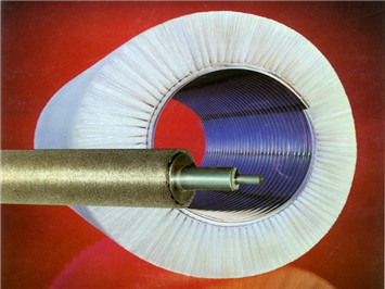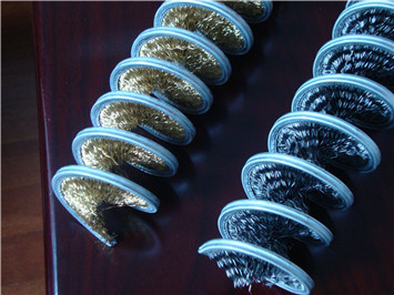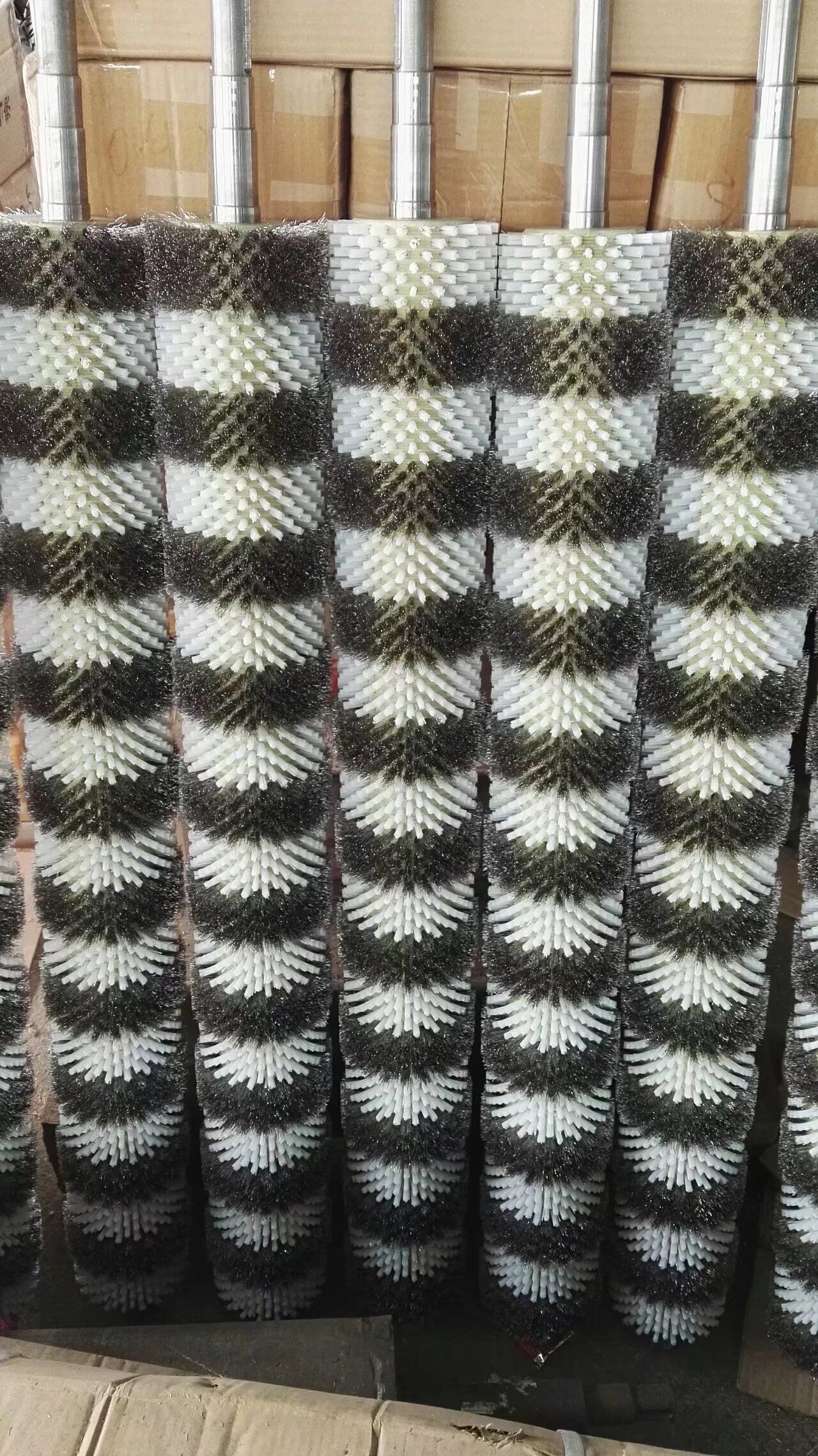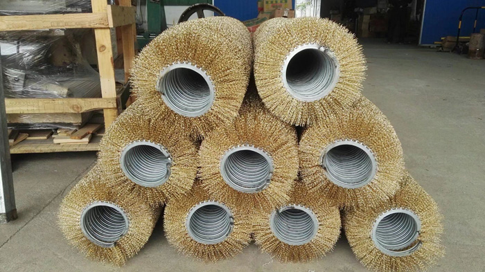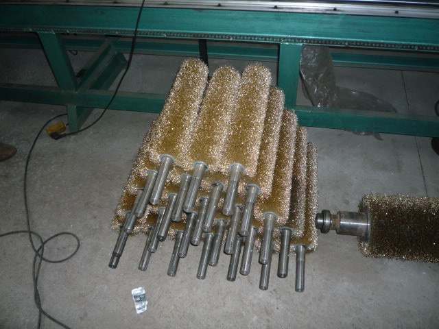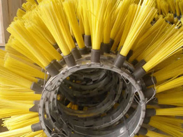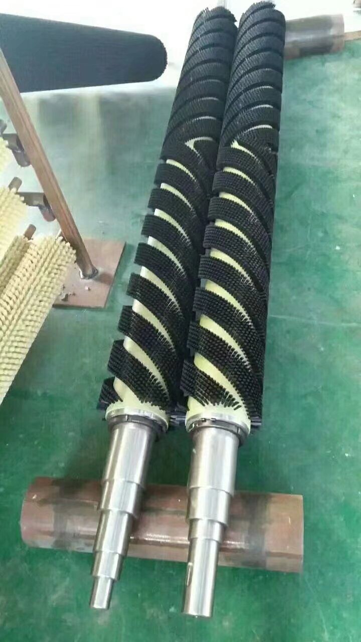 彈簧刷工藝制成的刷輥解決了密度高、牢度強(qiáng)等問(wèn)題,制造時(shí)先經(jīng)過(guò)條刷設(shè)備將刷毛由一根鋼絲壓入鋁帶或不繡鋼帶中制成條刷。從條刷機(jī)壓出的半成品條刷直接接入到彈簧刷繞毛設(shè)備上,通過(guò)強(qiáng)大的壓力和牽引使條刷成彈簧狀...